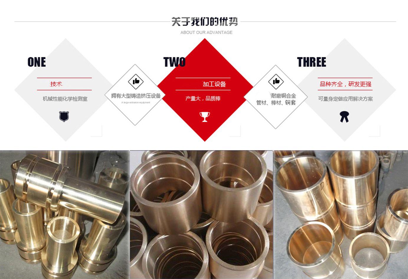 河間市銅套制品有限公司的生產設備精良,擁有40臺國內外先進設備;工藝水平先進,擁有砂型鑄造,金屬鑄造,離心鑄造等技術;是專業(yè)研究,開發(fā)自制的金屬制品企業(yè)。公司坐落于滄州市河間市束城鎮(zhèn),是國務院確定的經濟開發(fā)區(qū),地處北方重要陸海交通樞紐,交通十分便捷,且位鄰米各莊物流園,物流十分快捷,全國各地達到48小時內到貨。 主要經營:公司主要生產銅套,自潤滑銅套,儀器配件等,如銅軸套、銅滑板、銅瓦、銅蝸輪、銅滑塊、石墨軸承、石墨滑板、汽車配件,儀表,絲杠,法蘭,沖壓件,儀器零件,國標,非標,各種規(guī)格各種材質的金屬制品。 產品應用領域:工程機械 水利機械 礦山設備 液壓設備 鍛造設備 化工設備 紡織設備 冶金行業(yè) 機械 重工輕工等諸多領域。 主要合作單位:首都鋼鐵集團 ,河北鋼鐵集團 ,唐山鋼鐵集團 ,承德鋼鐵集團, 北京普析, 天津塞特。 常用材質介紹:錫青銅:以錫為主要合金元素的銅基合金稱錫青銅,錫青銅在造船、化工、機械、儀表等工業(yè)中廣泛應用,主要用以制造軸承、軸套等耐磨零件和彈簧等彈性組件以及抗蝕、抗磁零件等,有高的強度、彈性、耐磨性和抗磁性,在熱態(tài)和冷態(tài)下壓力加工性良好,對電火花有較高的抗燃性,可焊接和纖焊,可加工性好,主要牌號有ZCuSn6Zn6Pb3,ZCuSn10Pb5,ZCuSn...
